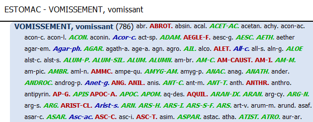 C’est en précisant les circonstances d’apparition des vomissements, le type de vomissement, l’horaire si il y en a un, la position qui soulage pendant le vomissement que l’on va réduire la liste de médicaments à choisir.